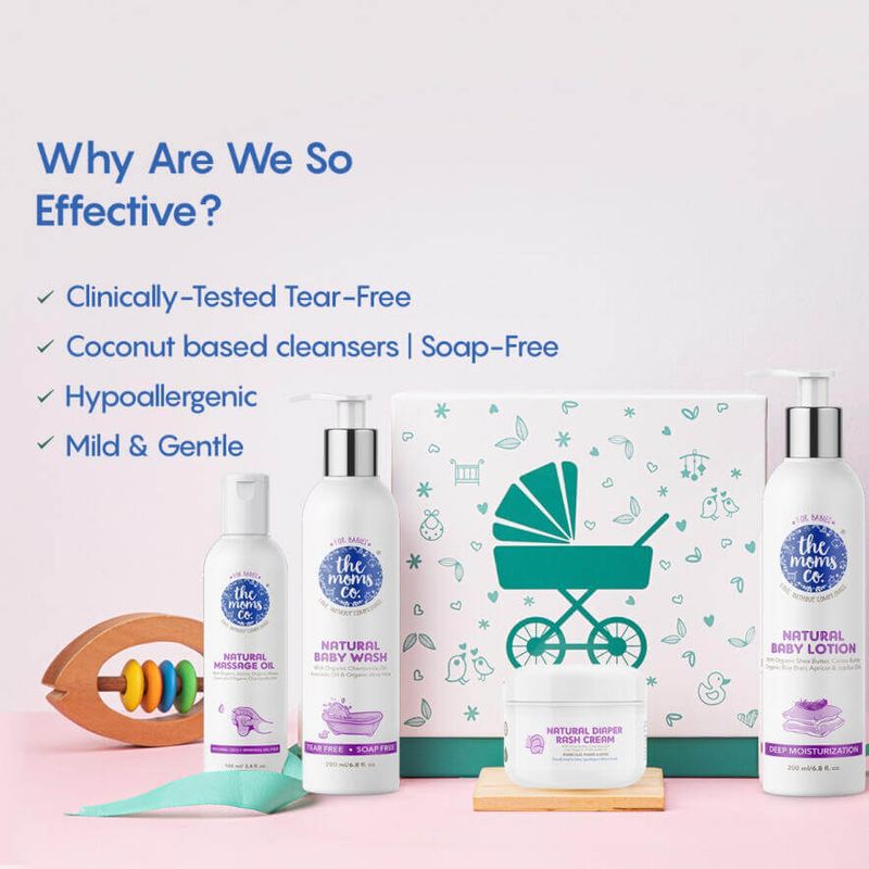 We know that for any mother, her little ones’ hygiene and comfort is of utmost importance. The Moms Co. Natural Baby Bottom Wash makes for the perfect partner for those messy diaper duties. Made with gentle, plant-based cleansers, our Natural Baby Bottom Wash keeps diaper area clean, and ingredients like Aloe Vera, Chamomile, Calendula Extract & Panthenol, soothe & refresh the baby’s sensitive skin.