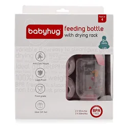 Babyhug Feeding Bottle Pack of 4 With Drying Rack Blue