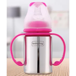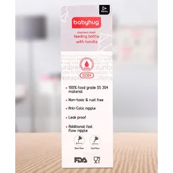 Babyhug 2 in 1 Twin Handle Feeding Bottle with Spout Pink- 220 ml