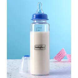 Babyhug Standard Neck Glass Feeding Bottle Blue – 250 ml