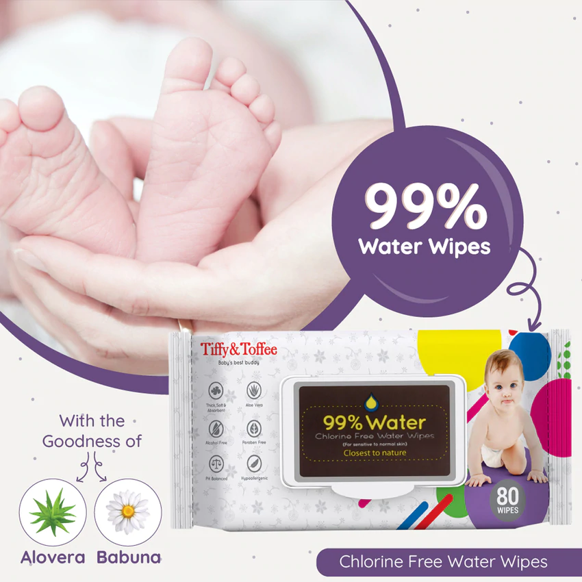 Enriched with Aloe Vera and Chamomile Extracts, Tiffy & Toffee’s 100% Alcohol & Paraben Free Baby Wipes are Soft on your Baby’s Delicate Skin. These Wipes have Skin-Soothing Properties  and are ideal to Clean Hands, Face and other Body Parts. Being Thick and Absorbent these Wipes Cleans Your Baby’s Skin without Drying it Out and Proves Convenient during Changing or Feeding Time. The Medical Properties of  Aloe Vera and Babuna Keep Yourself and Your Loved Ones Protected from Viruses, Bacterias, Germs & Microbes Infection help UV-Related Damage. These Wipes have Skin Friendly PH Constituents so no Worry related to Allergy, Irritation or Rashes. The Package is Handy, so you can Carry it Everywhere without any Hassle.