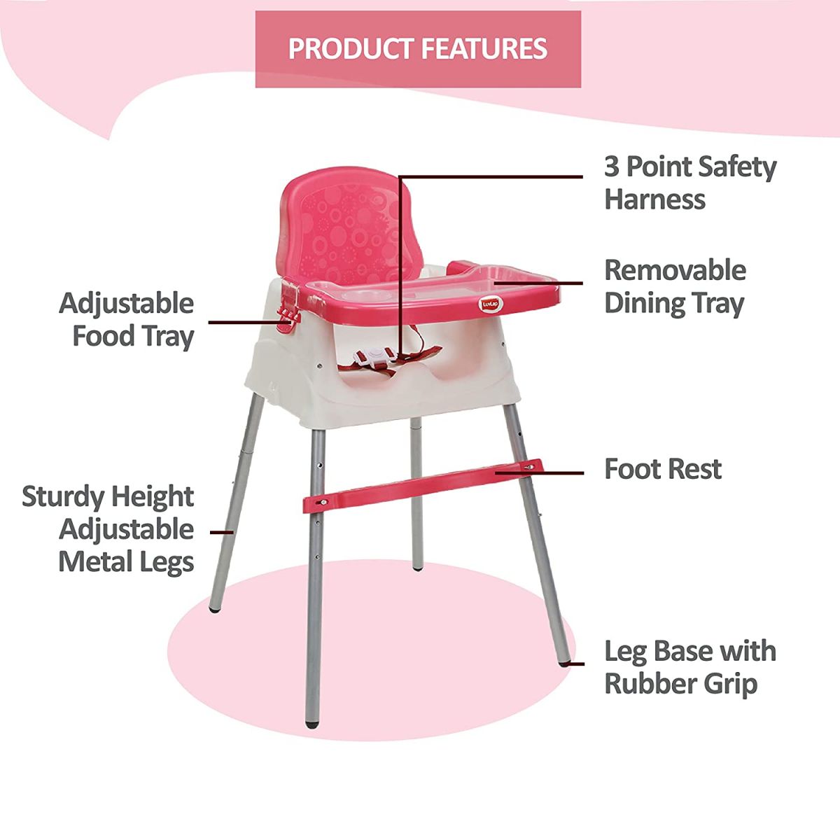 The 4-in-1 convertible high chair can be used as a high chair, low chair, Booster seat on a dining chair and as well as on floor. It comes with adjustable removable food tray and seat cover that can easily be washed. With a 3-point safety harness system, adjustable dining tray and compact folding makes this a smart solution for Mom.
