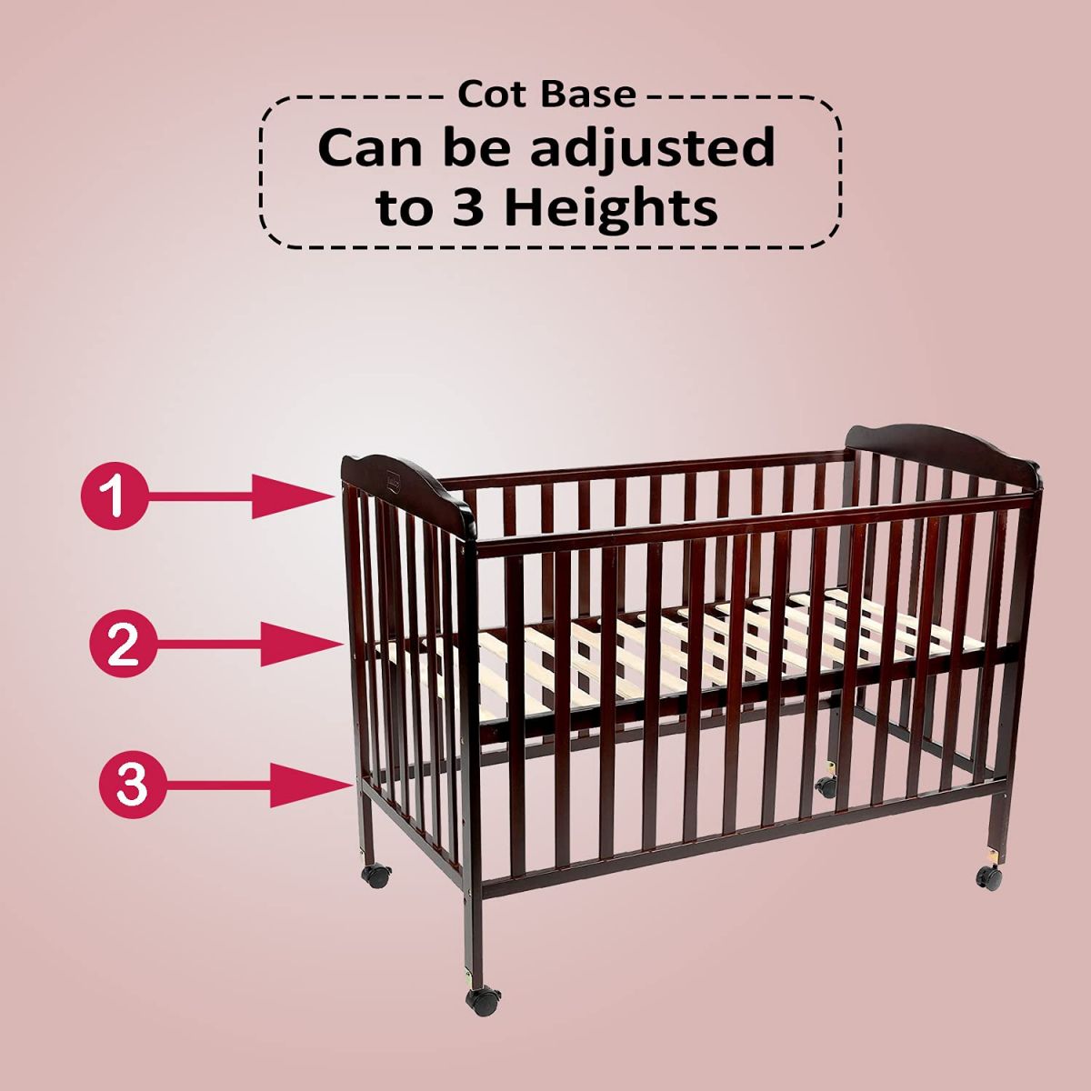 - Cot comes with wheels for easy mobility & locks keep it steady when required