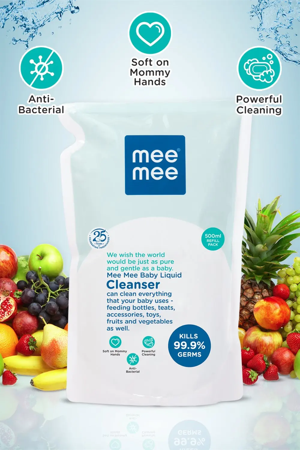 Whether it is new tastes and textures or easing those teething gums. A lot of goes into the tiny, curious , mouth of your baby. Mee Mee Baby Liquid Cleanser cleans your baby’s bottles, accessories, toys, vegetables and fruits and makes them safar for him/her to use.An environmental-friendly formulation, if helps you remove the stubbornest milk stains as well as milk odour easily.