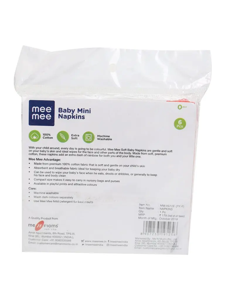 Mee Mee Baby Mini Napkins (Assorted) Set Of 6