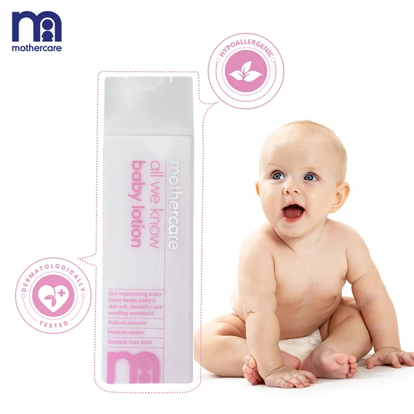 Mothercare All We Know Baby Lotion has a non greasy formulation which gently protects and moisturizes your baby’s delicate skin, leaving it feeling soft and smooth. Our Moisturizing baby lotion keep baby’s skin soft, beautiful and smelling wonderful. It Contains Olive Oil, Nature’S Ultimate Moisture And Soothing Chamomile.