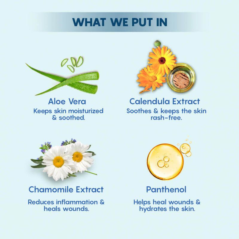 We know that for any mother, her little ones’ hygiene and comfort is of utmost importance. The Moms Co. Natural Baby Bottom Wash makes for the perfect partner for those messy diaper duties. Made with gentle, plant-based cleansers, our Natural Baby Bottom Wash keeps diaper area clean, and ingredients like Aloe Vera, Chamomile, Calendula Extract & Panthenol, soothe & refresh the baby’s sensitive skin.
