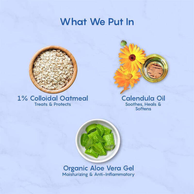 Our Natural Soothing Relief Wash for dry skin intensely moisturises and soothes very dry, rash-prone or sensitive skin. 1% Colloidal Oatmeal, Organic Aloe Vera & Calendula Oil work together for moisturising and to relieve itching and discomfort of eczema.