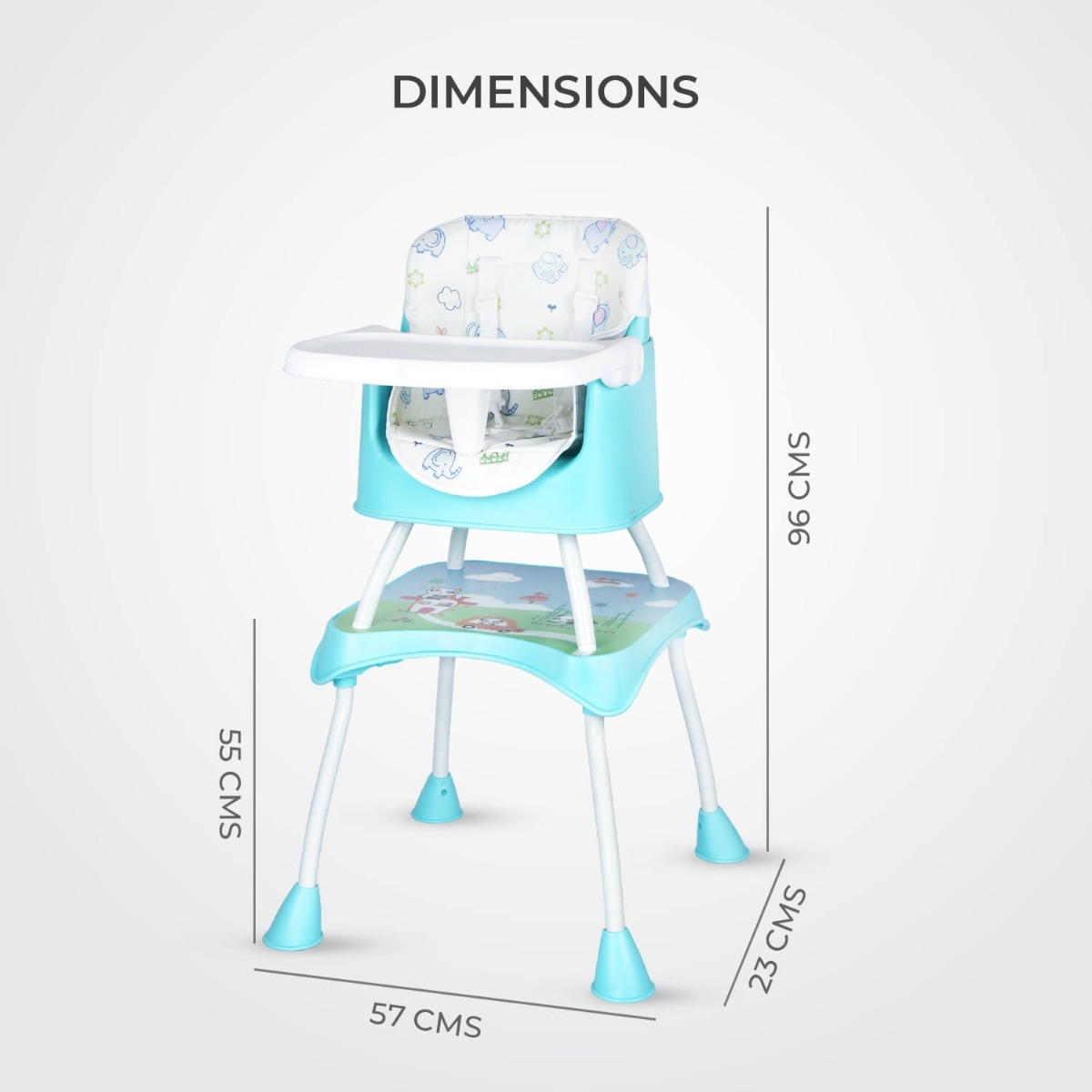 Removable Tray – Dining Tray can be easily removed to use High Chair directly with the Table or to be used as a Study Desk