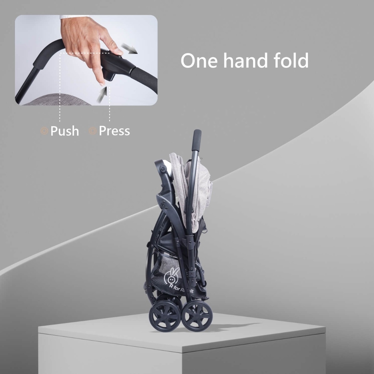 One-Hand Fold: Fold the stroller with ease while your baby is in your other hand