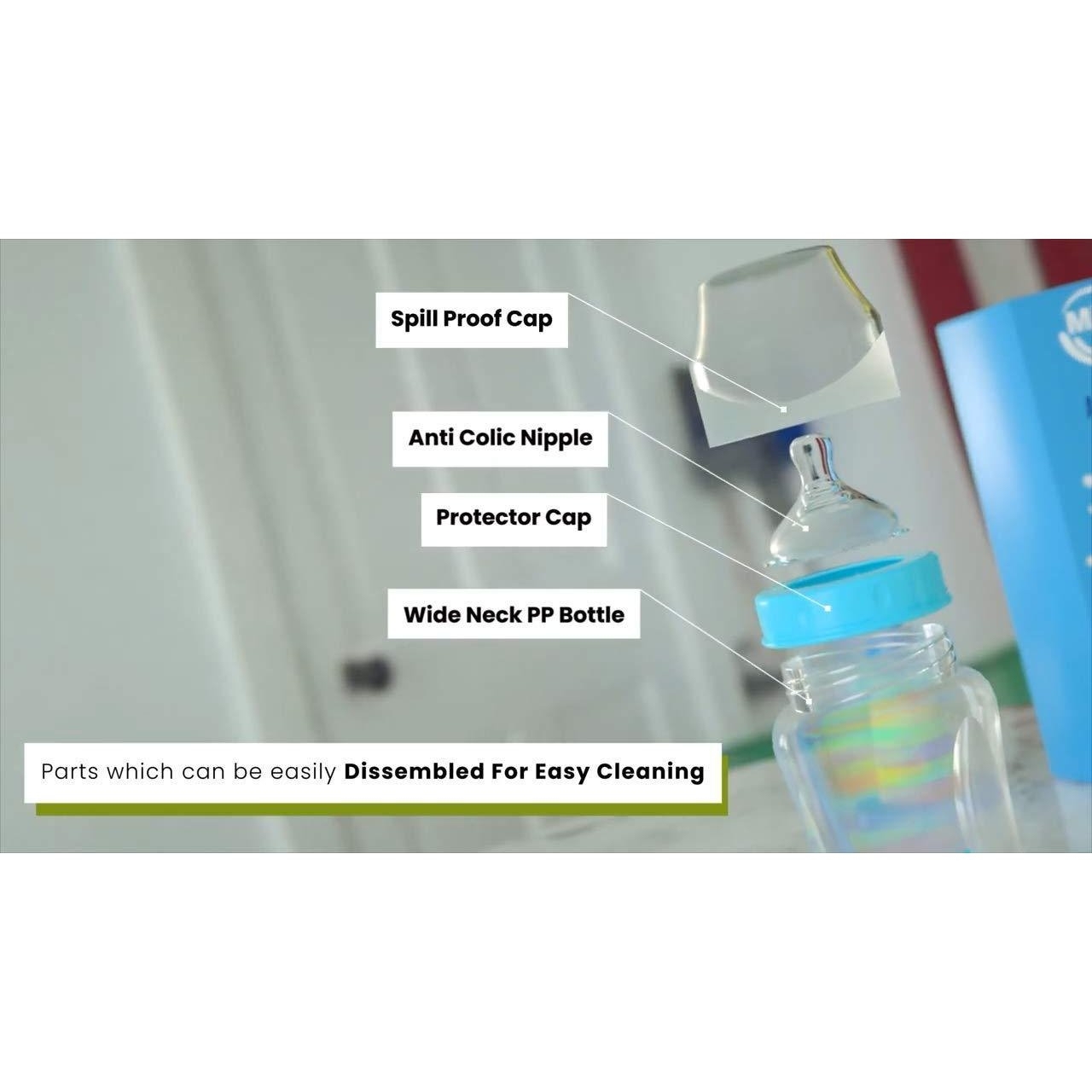 Wide Neck Bottle: Baby feeding bottle with a wide neck is perfect for a wider nipple that mimics the look and feel of the breast and makes the baby feel comfortable while feeding.