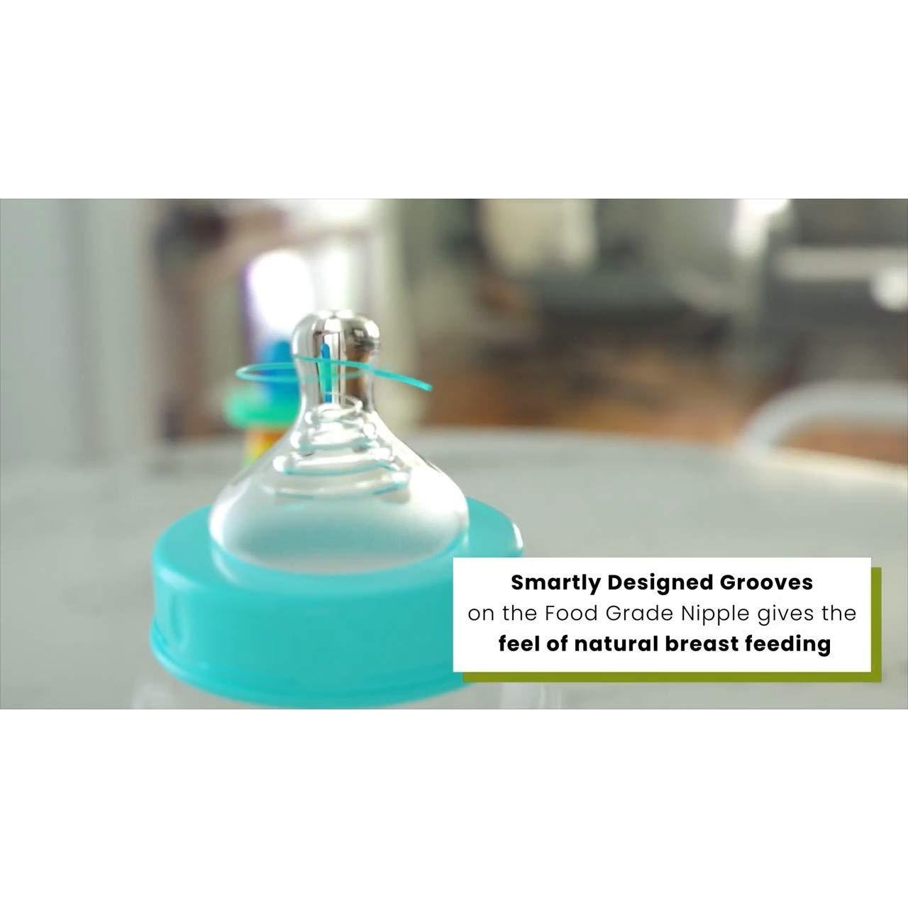 Top Grade Nipple: Soft silicone BPA Free wide nipple to mimic the breast of a mother, while the grooves on it makes it Anti Collapse and prominent for better feeding experience.