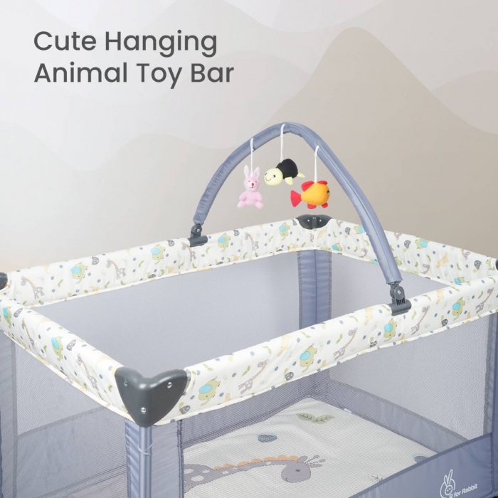 Cute Toy bar: Let your baby enjoy playtime with a cute toy bar hanging overhead.