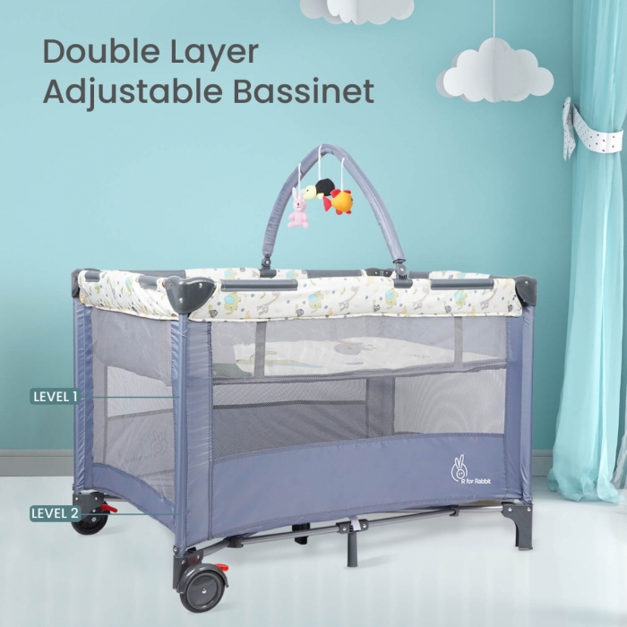 Double-layered bed: Adjust or remove the double bed layer with an easy hook mechanism as per the baby’s comfort.