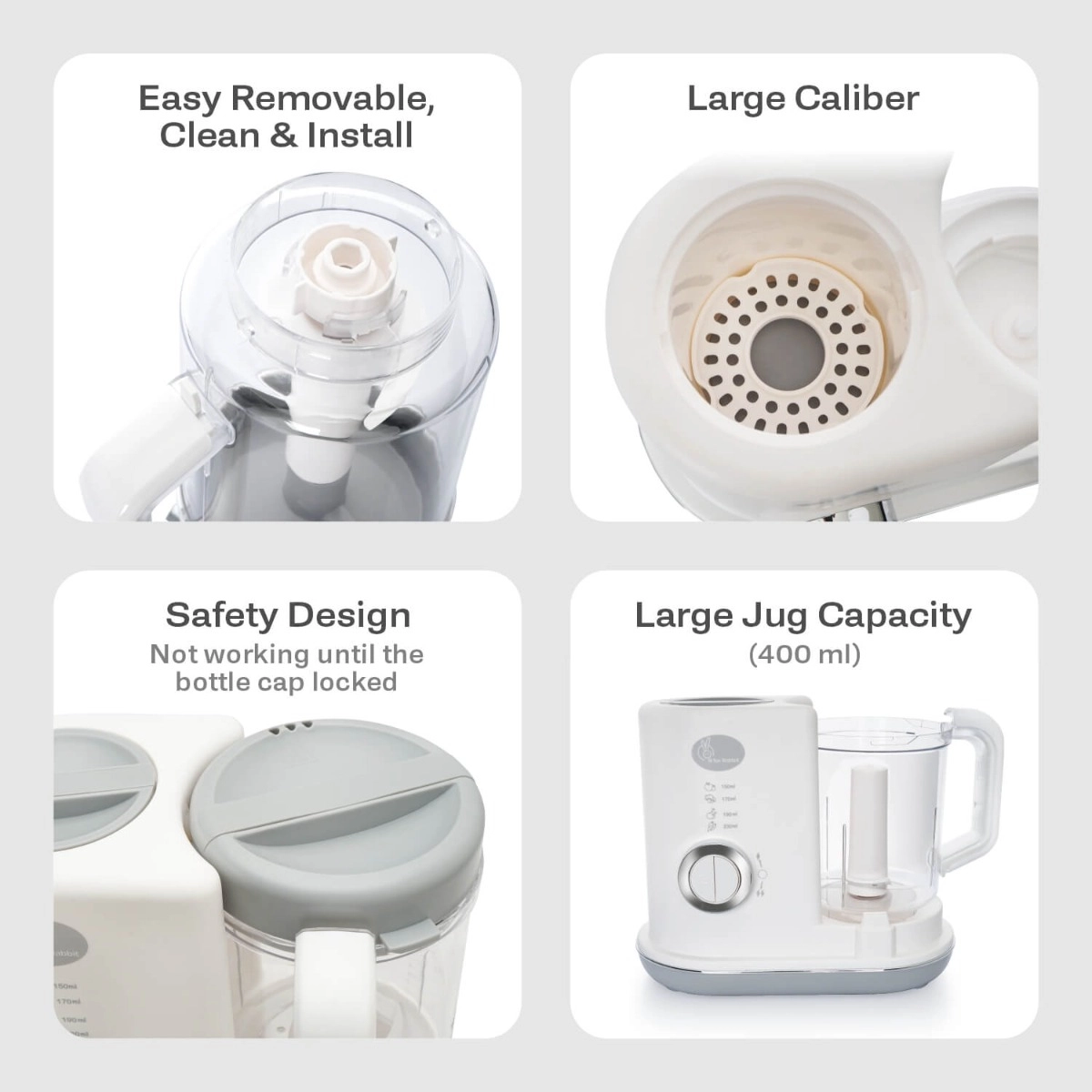 Safety First R for Rabbit iBot Food Processor is composed of Safe Tritan Cup and PP Basket which are safe as well as durable and comes with a transparent view so you can check the functionality during operation.