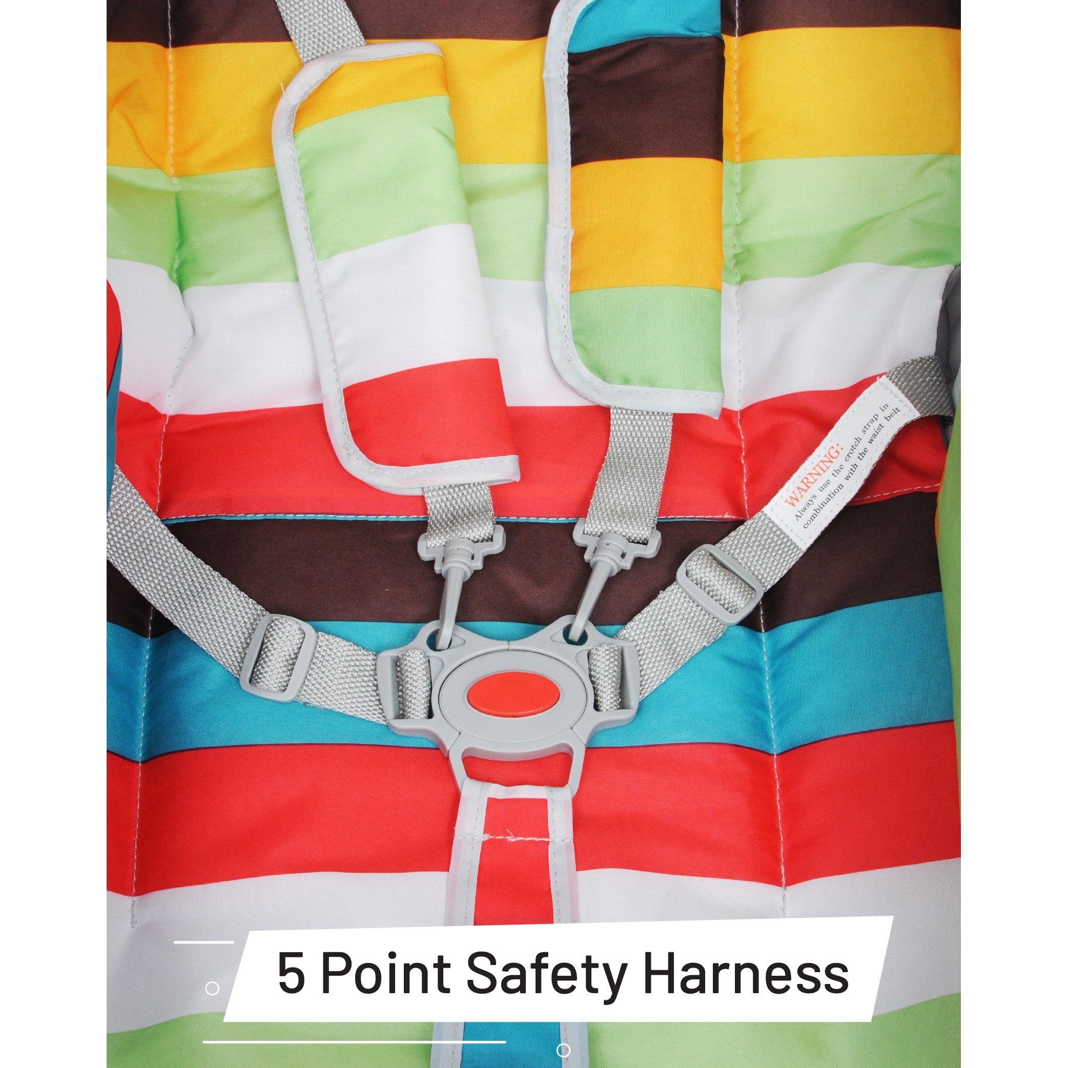 5 Point Safety Harness – Got 5 point Safety Harness to hold your baby in most safe position while strolling.