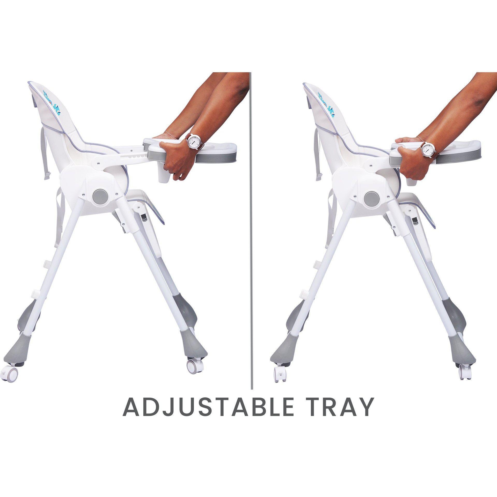 Adjustable & Removable Double Meal Tray: Marshmallow features a smart one hand removable meal tray with 3 positions plus a dishwasher safe upper tray, making it easy to clean after messy mealtimes.