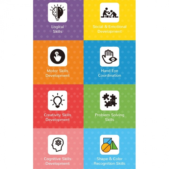 • While building the castle or different shapes child can learn A to Z alphabets in sequence with colourful cubes, having word and design on it makes it easier to learn ABCD.