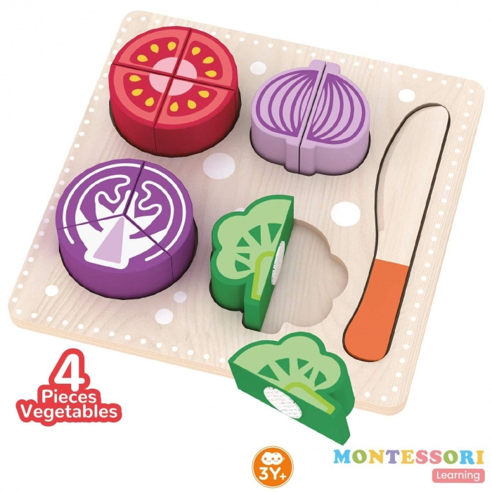 • Cute Vegetables: Cute colourful Vegetables with no sharp edges can be divided into pieces with the help of a wooden knife