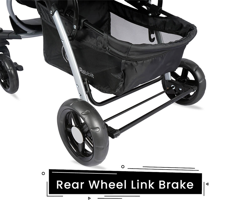Front Wheels and Suspension – The Best suspension designed to give the smoothest ride to your baby while strolling. The best suspension is specially designed for tough roads in India. 6.5-inch front wheels to swivel or lock for long strolling. Front-wheel brake helps to give you a safe ride with a reversible handle.
