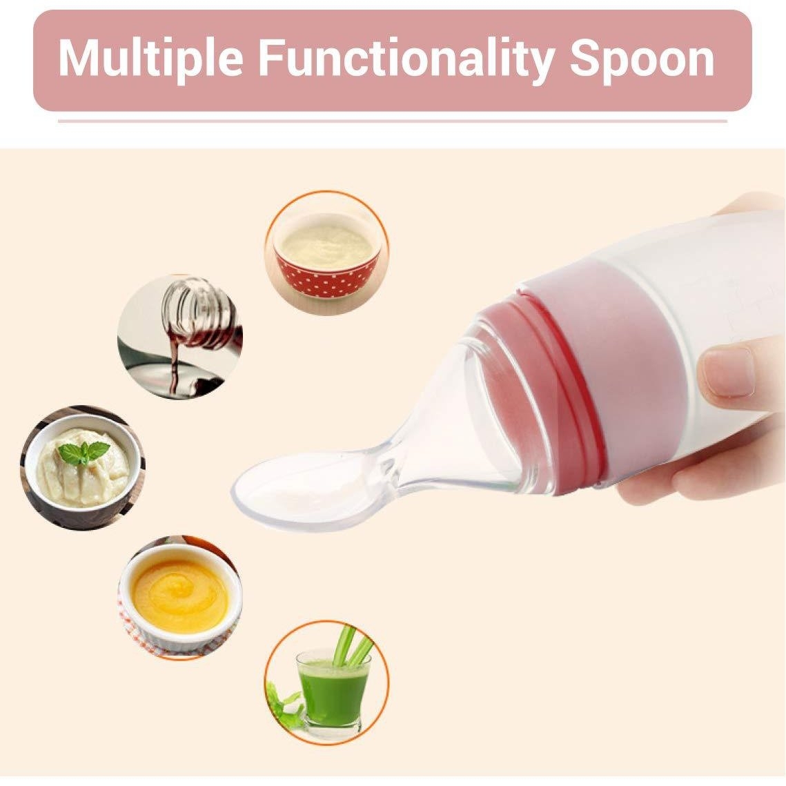 For Mix Of Foods: This baby spoon feeder can be used to feed juices, cereal, mashed rice, veggies, all kinds of semi-solids and so on.