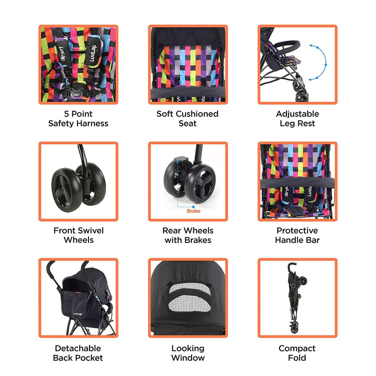 Detachable Back pocketParent can keep their essentials in the back pocket thus eliminating an extra bag.