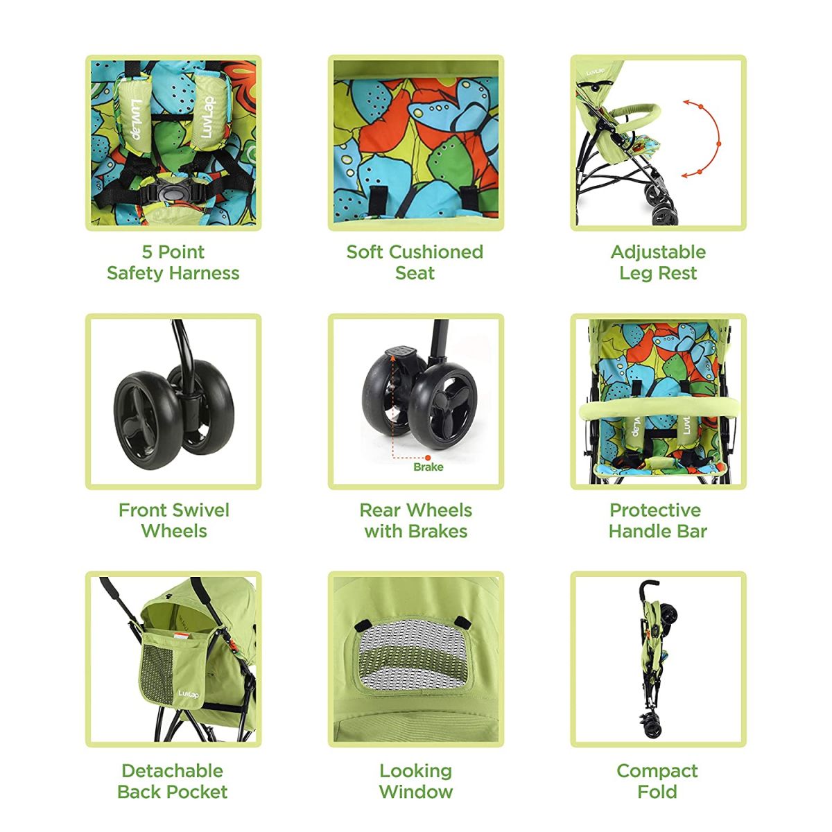 Detachable Back pocketParent can keep their essentials in the back pocket thus eliminating an extra bag.